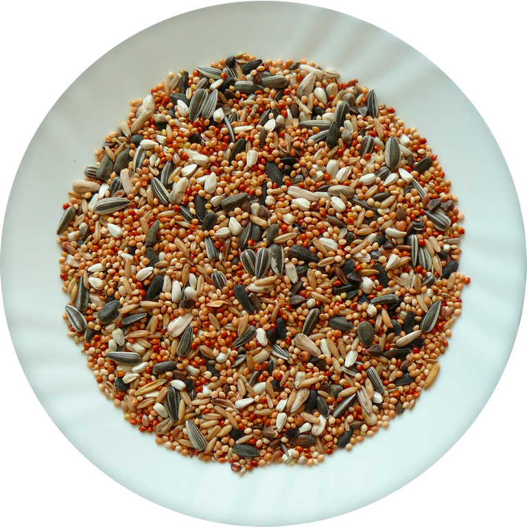 Proso (žluté, bílé a červené), oves nahý a černý, slunečnice (žíhaná a černá), světlice barvířská, pohanka, lesknice, len, čirok.