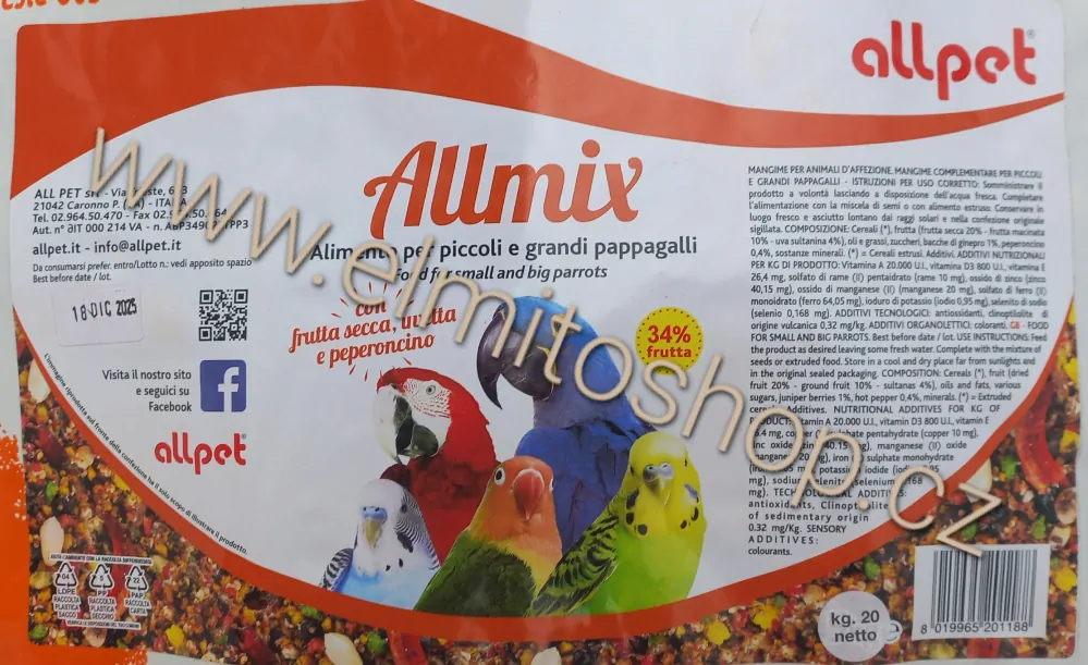 Vaječné krmivo s ovocem (min. 24 %), ořechy (min. 10 %) a chili papričkami.