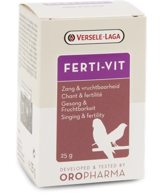 Oropharma Ferti-Vit je vyvážená směs vitamínů, aminokyselin a stopových prvků, obohacená o vitamín E. Používá se během přípravy na období rozmnožování, při zpěvu kanárků a pěnkav a v případech snášky a poruch plodnosti nebo v případě úhynu ve vejci. Ferti-Vit podporuje sexuální apetit a plodnost. Během období rozmnožování potřebuje pták optimální směs vitamínů, aminokyselin a stopových prvků. Základní vitamín E, nazývaný také vitamín plodnosti, je silný antioxidant. Kombinace složek v Ferti-Vitu je nejen optimální pro chov, ale také zvyšuje odolnost vůči nemocem a pomáhá chránit srdce a svalovou tkáň.